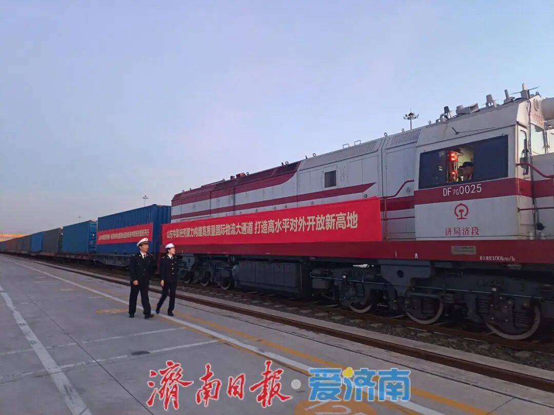 为推动济南纳入全程时刻表,济南市口岸和物流办公室推动打造“沿黄合作区域平台”,在全省沿黄城市设置了16个铁路集结点,将“齐鲁沿黄专列”定位为“黄河流域进出口货物集结主通道”,逐步构建起“辐射沿黄、联通亚欧、陆海联动”的物流新格局,专列累计发运超2万标箱、服务企业1000余家,有力助推“鲁货出海”。